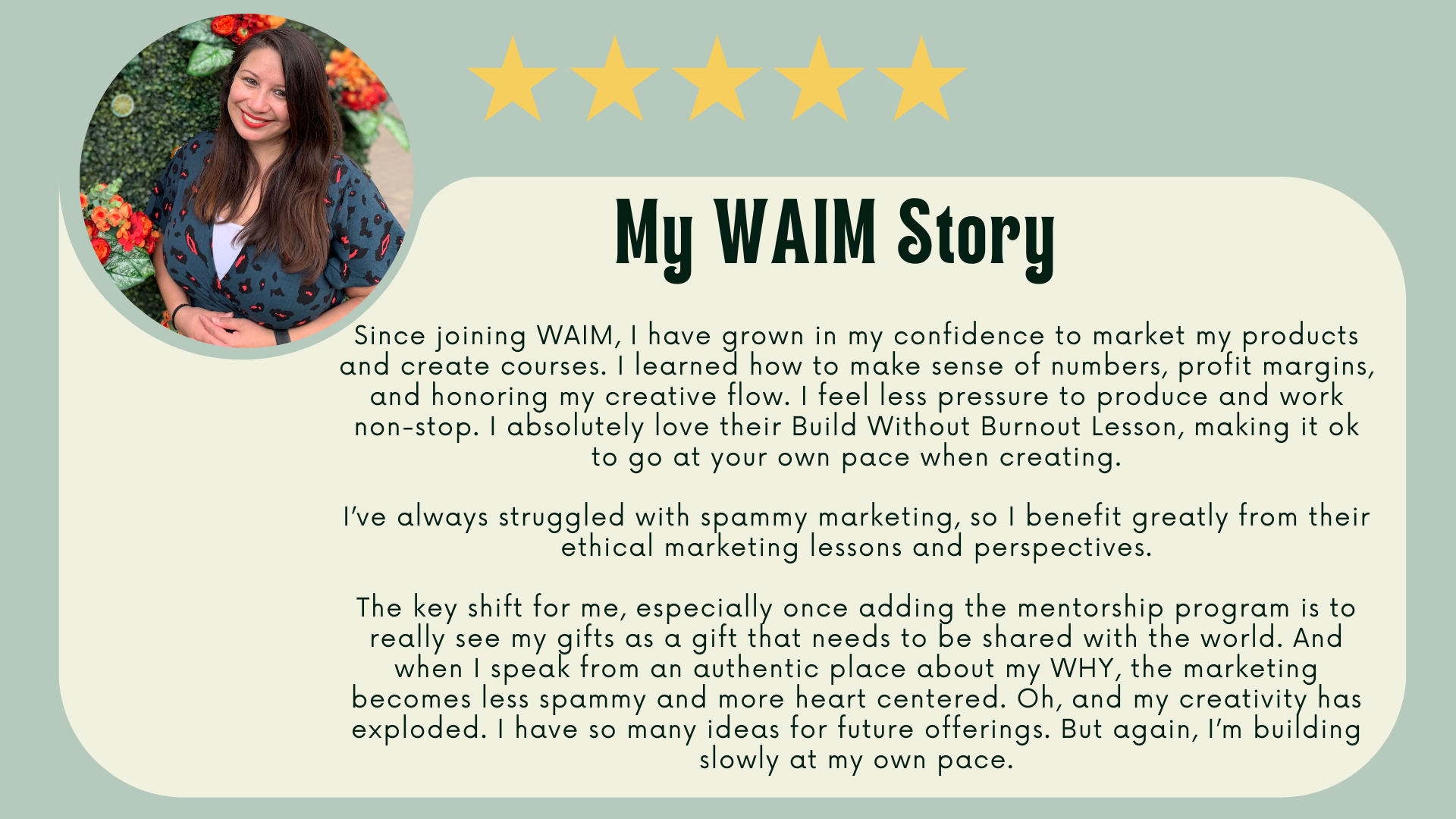 Not only does WAIM Unlimited continue to teach me skills to level up everything from my email list to my content marketing to my website and brand messaging, but (maybe more importantly), it gives me that extra dose of support and motivation to keep going whenever I feel stuck.